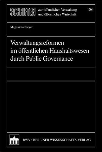 verwaltungsreformen Bleyer M. (2004): Verwaltungsreformen im öffentlichen Haushaltswesen durch Public Governance (Dissertation), Berlin: Berliner Wissenschaftsverlag 2004, (in Druck) voraussichtliches Veröffentlichung im Jänner 2005 (Schriften zur öffentlichen Verwaltung und öffentlichen Wirtschaft, Bd. 186)